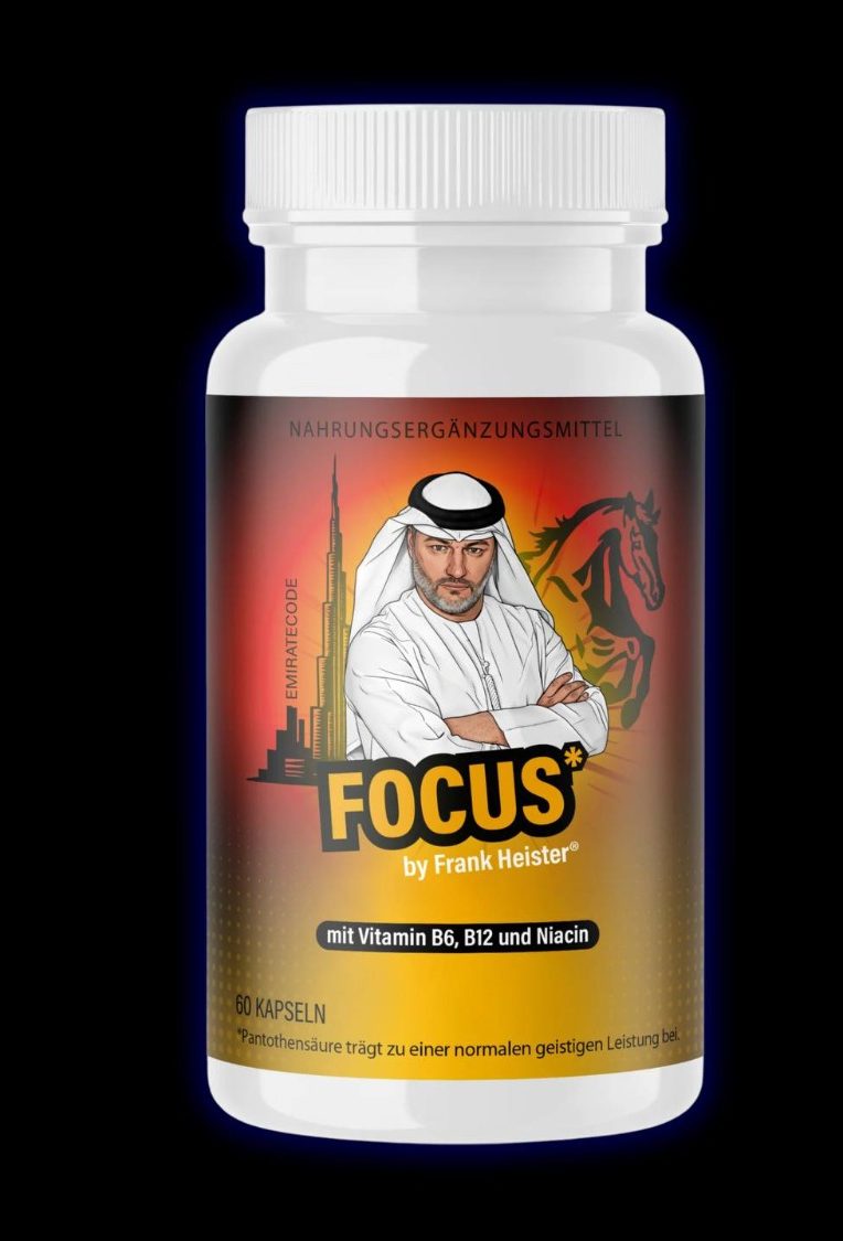 FOCUS by Frank Heister ist ein Nahrungsergänzungsmittel, das entwickelt wurde, um im Alltag mehr mentale Energie, geistige Klarheit und besseren Fokus zu erreichen. Ideal für Beruf, Studium, Training und stressige Phasen.